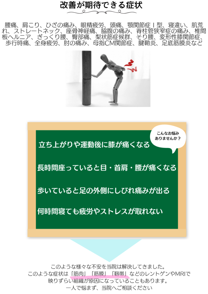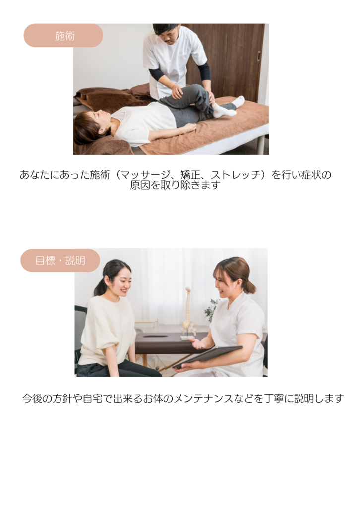 当院は腰痛やその他も慢性症状に特化した整体院です。痛みの出ない気持ちの良い施術で無理なく施術を体感できるよう配慮しております。また患者様の個人情報の流出が無いよう強く徹底しておりますので安心して起こし下さいませ。